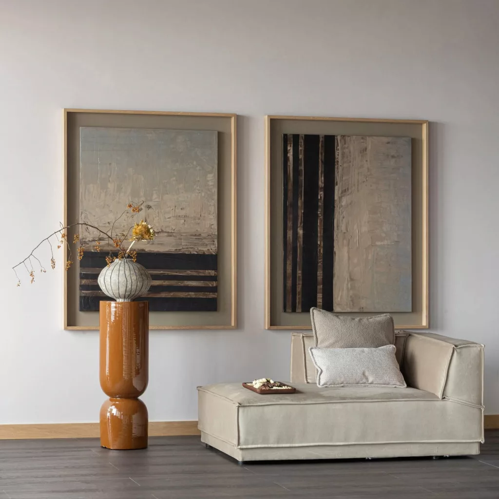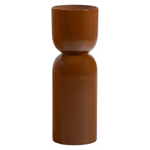 The Toval flower stand is an elegant and playful piece from the Dutch brand WOOOD, which instantly brings style to your home with its honey-yellow, high-gloss metal surface. The modern, tall design allows you to visually place plants or decorative objects in the space. The flower stand can be used in two ways: on one side you can place a beautiful bouquet of (dried) flowers or a decorative sculpture, while on the open side you can place a plant to bring extra green color to the apartment.