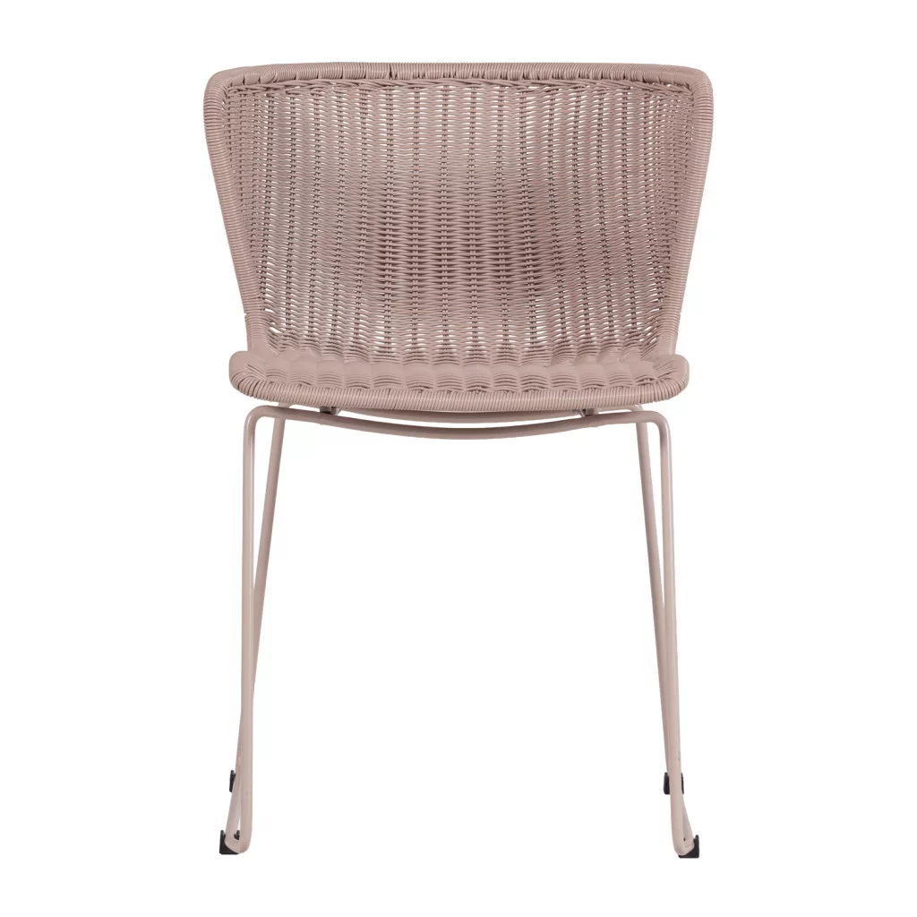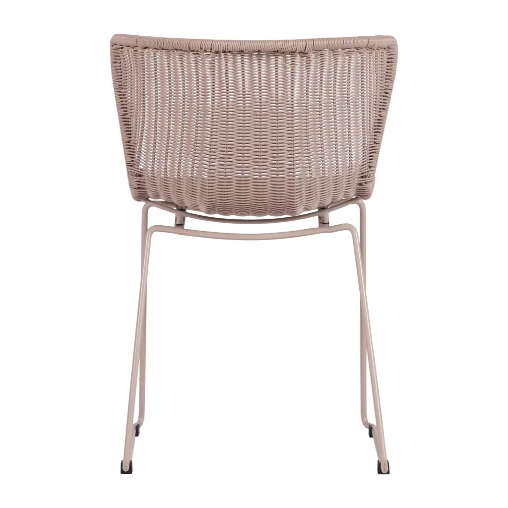 The seat material is polyethylene, which is lightweight, flexible and impact-resistant, so it can withstand everyday use in the long term. The material is water-repellent and resistant to temperature fluctuations, so it can also be used perfectly outdoors. The powder coating of the sand-colored steel frame provides extra protection and contributes to the luxurious look of the chairs.