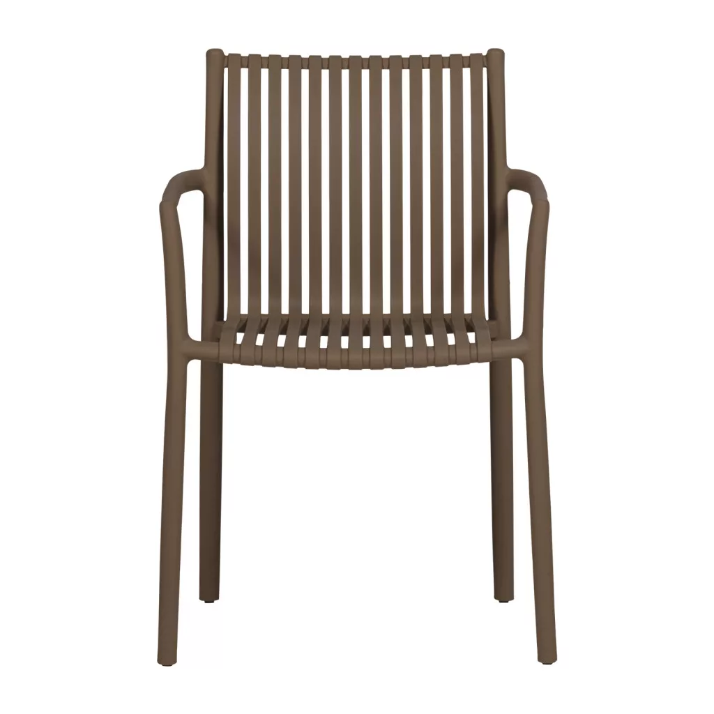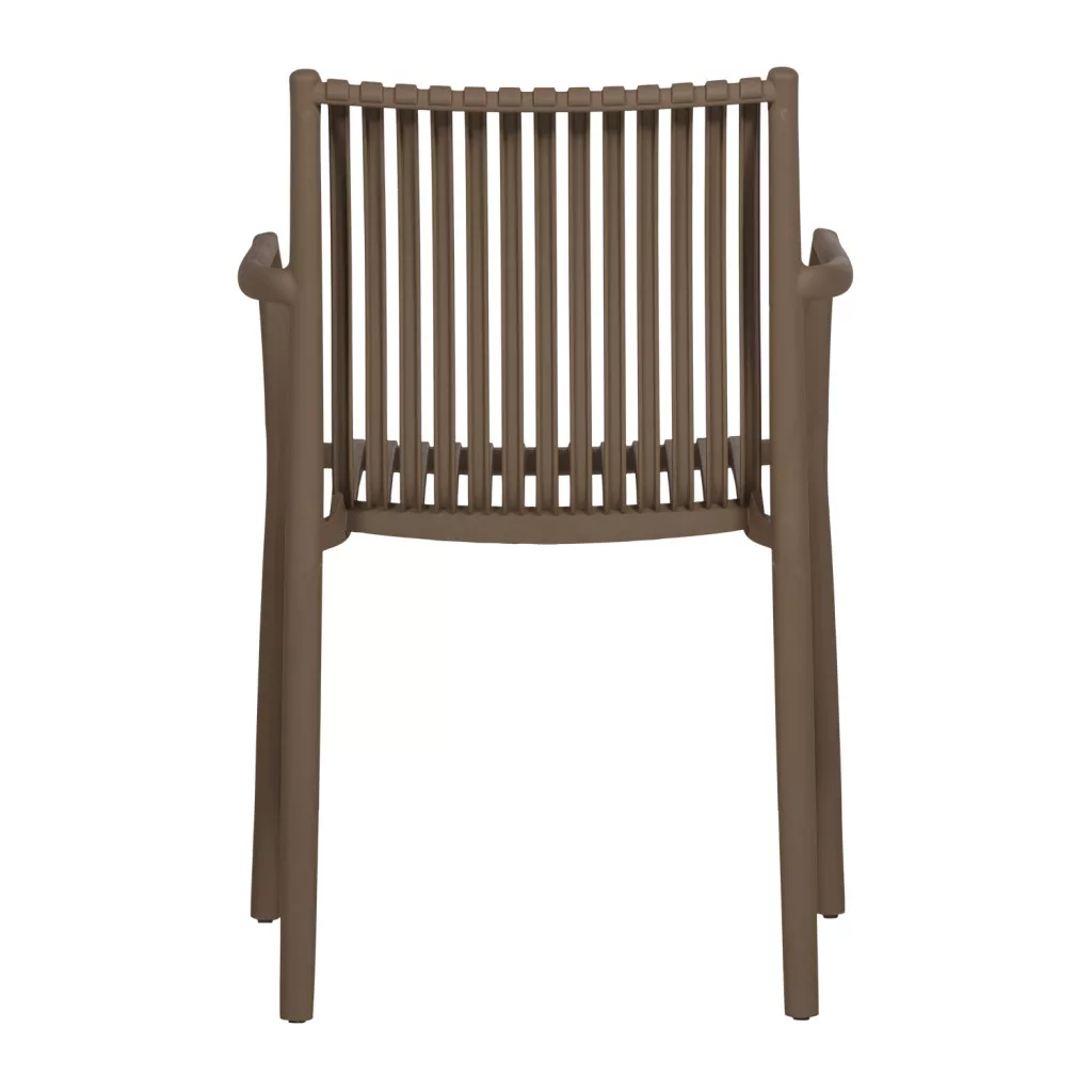 The chair's frame is made of polypropylene plastic, which is specifically suitable for outdoor use. The material is lightweight, so the chair can be easily moved when you want to change the layout of your terrace or garden. The built-in UV protection preserves the beauty of the brown color in the long term, even in outdoor environments exposed to the sun.